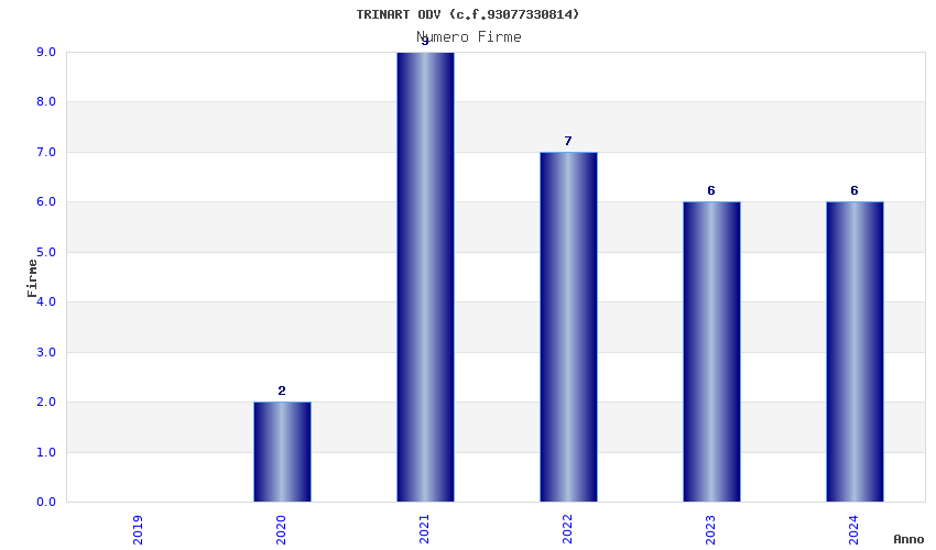 | Anno | Firme | Importi | Media | Naz. | Reg. | Prov. | Comu. |