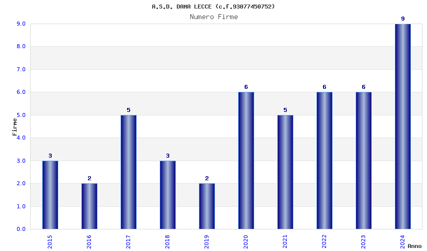 | Anno | Firme | Importi | Media | Naz. | Reg. | Prov. | Comu. |