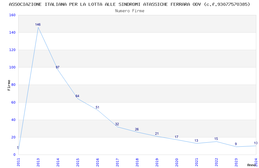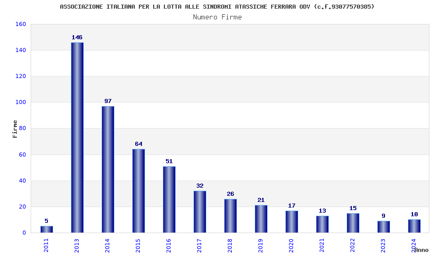| Anno | Firme | Importi | Media | Naz. | Reg. | Prov. | Comu. |
