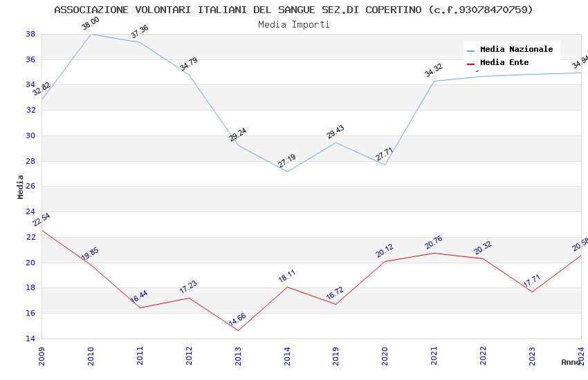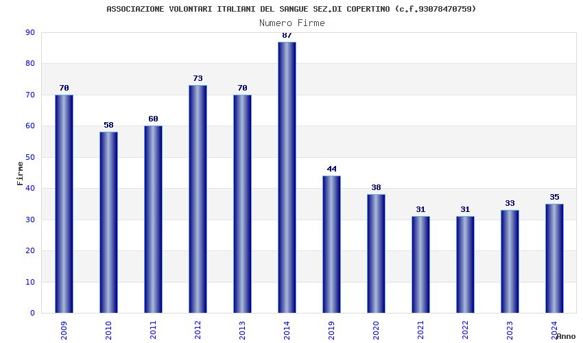 | Anno | Firme | Importi | Media | Naz. | Reg. | Prov. | Comu. |