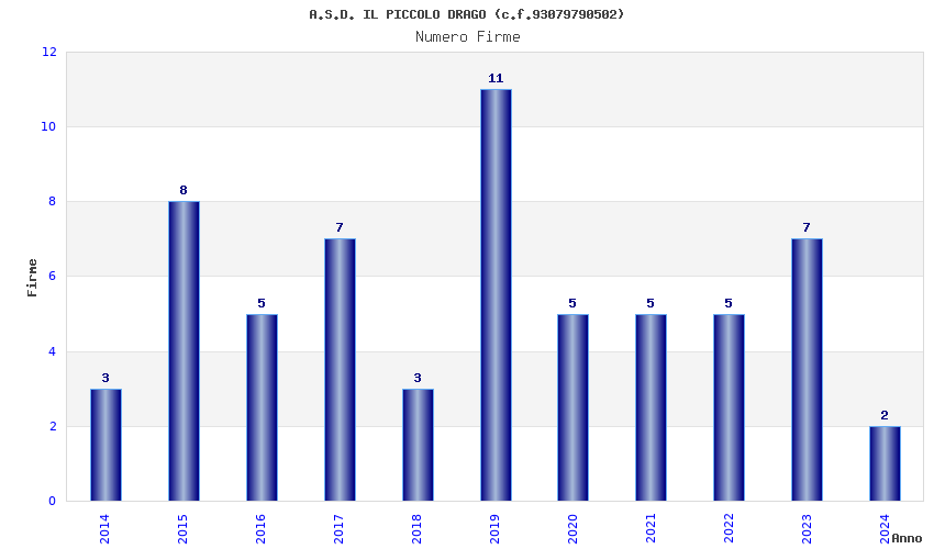 | Anno | Firme | Importi | Media | Naz. | Reg. | Prov. | Comu. |
