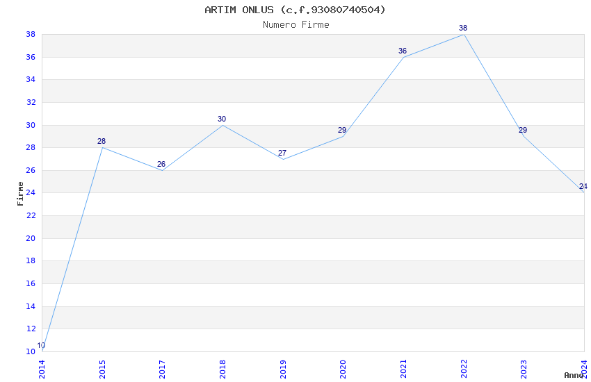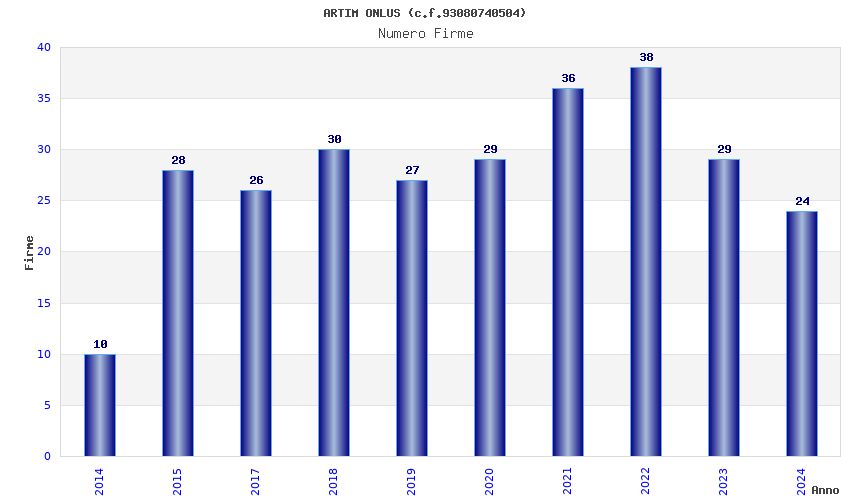 | Anno | Firme | Importi | Media | Naz. | Reg. | Prov. | Comu. |