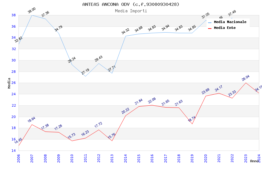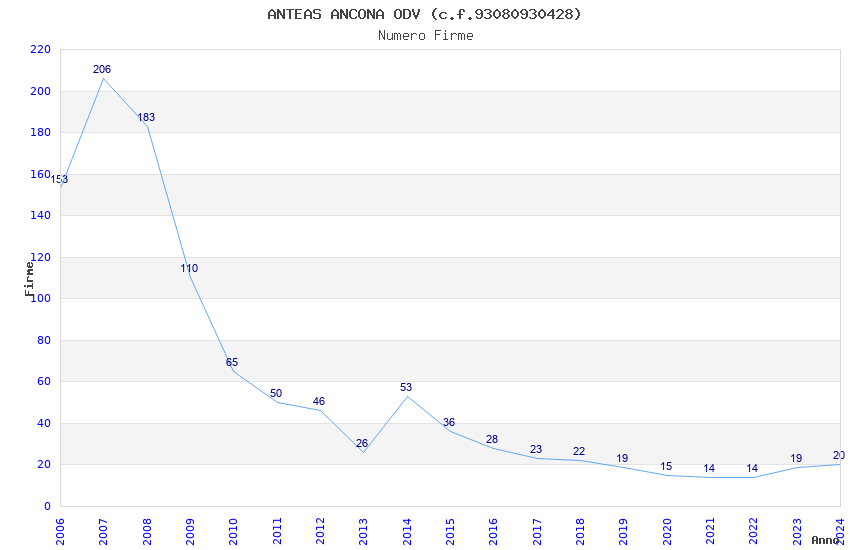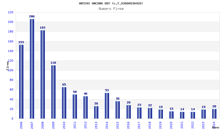 | Anno | Firme | Importi | Media | Naz. | Reg. | Prov. | Comu. |