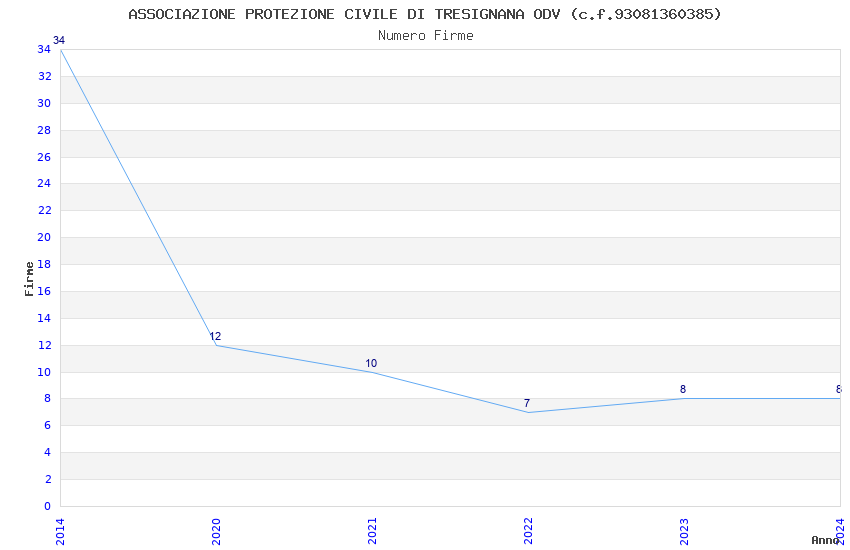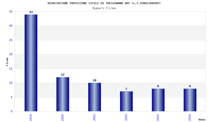 | Anno | Firme | Importi | Media | Naz. | Reg. | Prov. | Comu. |