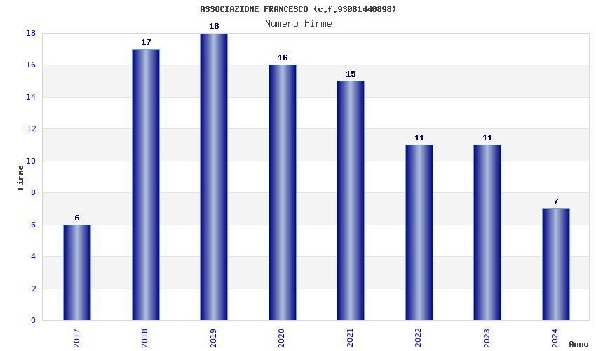 | Anno | Firme | Importi | Media | Naz. | Reg. | Prov. | Comu. |