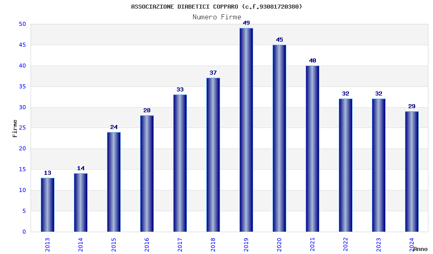 | Anno | Firme | Importi | Media | Naz. | Reg. | Prov. | Comu. |