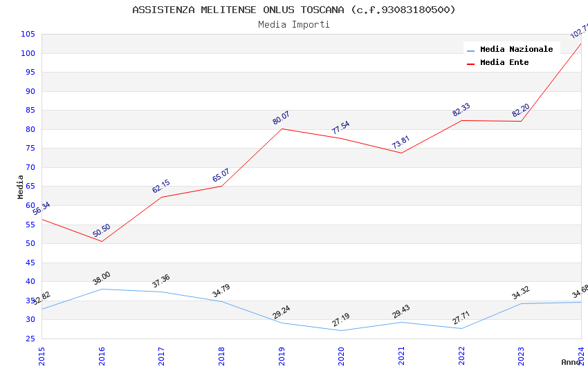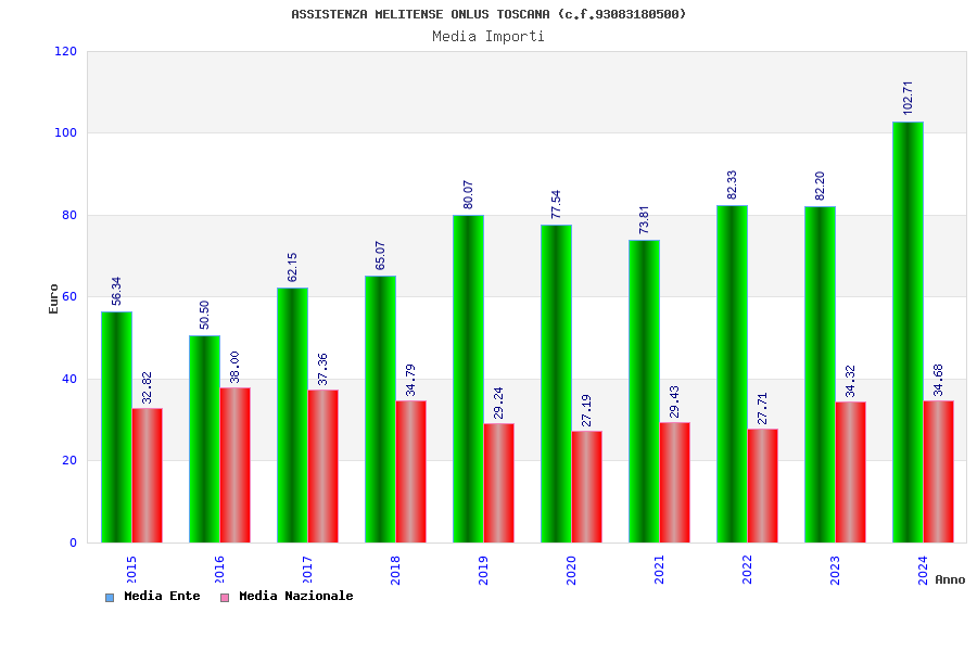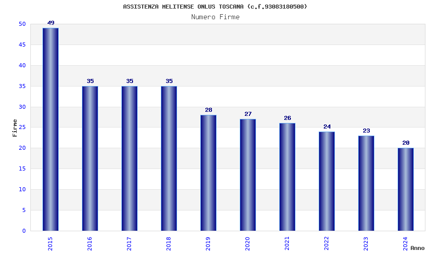 | Anno | Firme | Importi | Media | Naz. | Reg. | Prov. | Comu. |