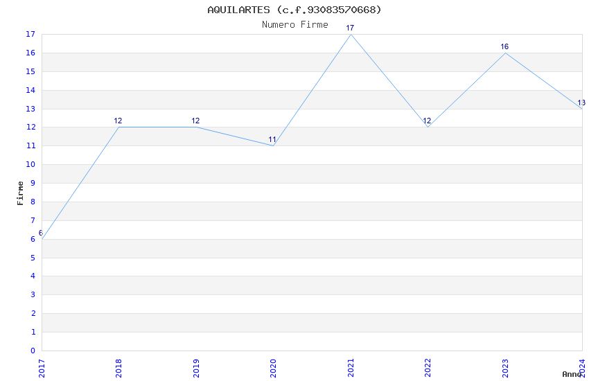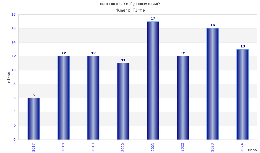 | Anno | Firme | Importi | Media | Naz. | Reg. | Prov. | Comu. |