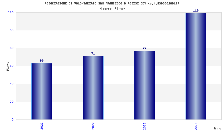 | Anno | Firme | Importi | Media | Naz. | Reg. | Prov. | Comu. |