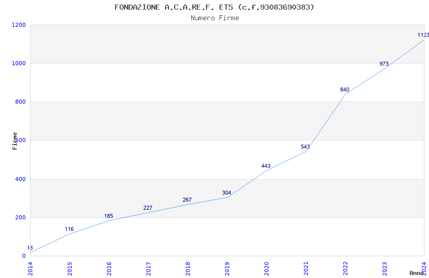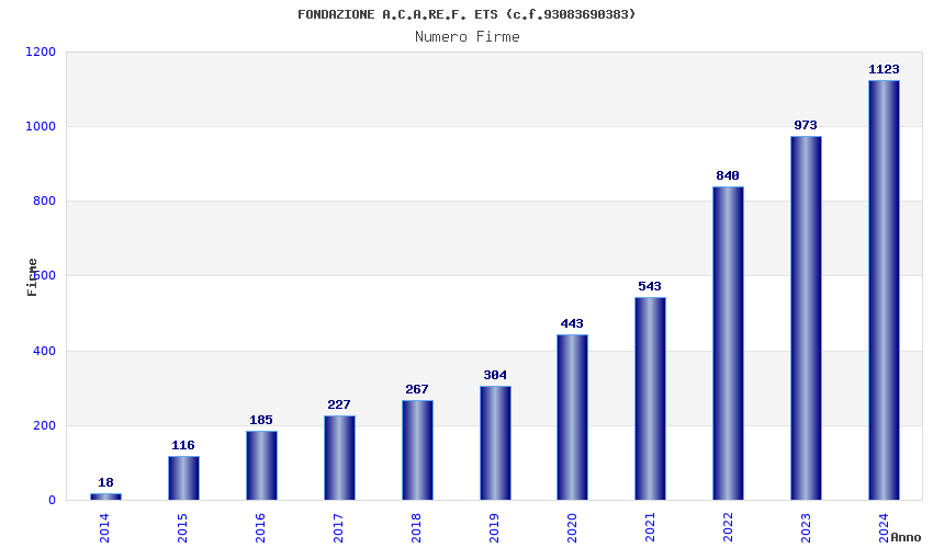 | Anno | Firme | Importi | Media | Naz. | Reg. | Prov. | Comu. |