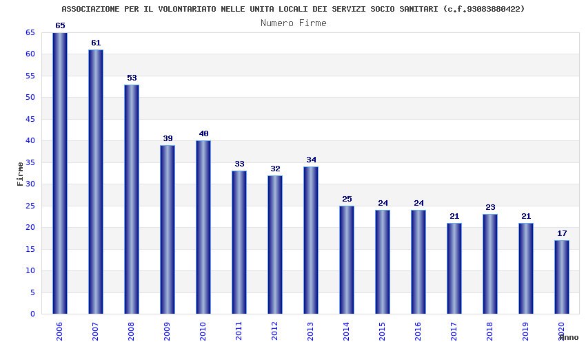 | Anno | Firme | Importi | Media | Naz. | Reg. | Prov. | Comu. |