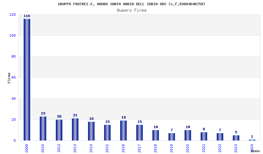 | Anno | Firme | Importi | Media | Naz. | Reg. | Prov. | Comu. |