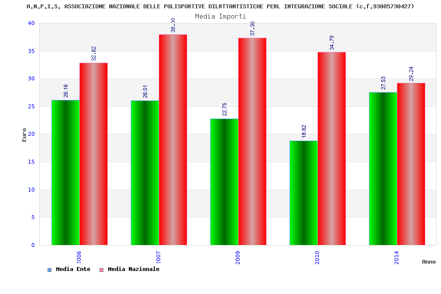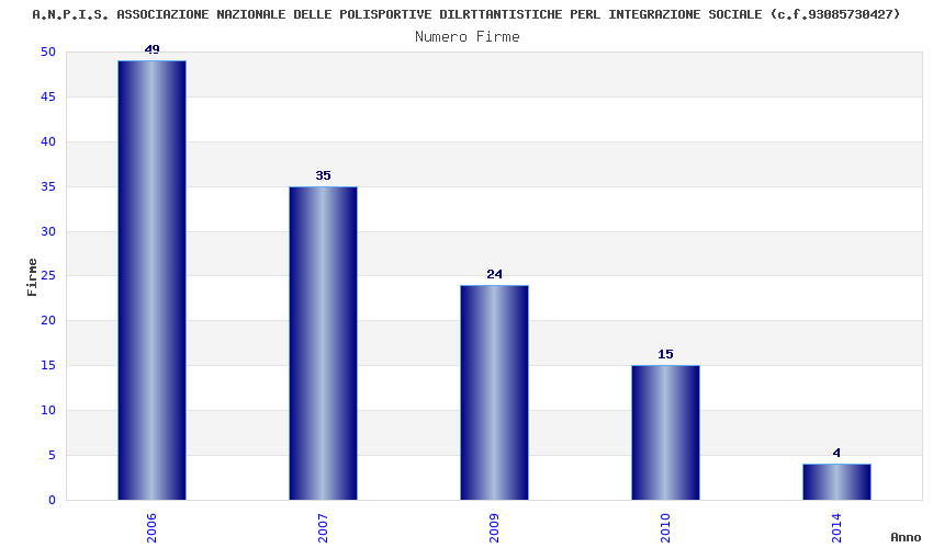 | Anno | Firme | Importi | Media | Naz. | Reg. | Prov. | Comu. |