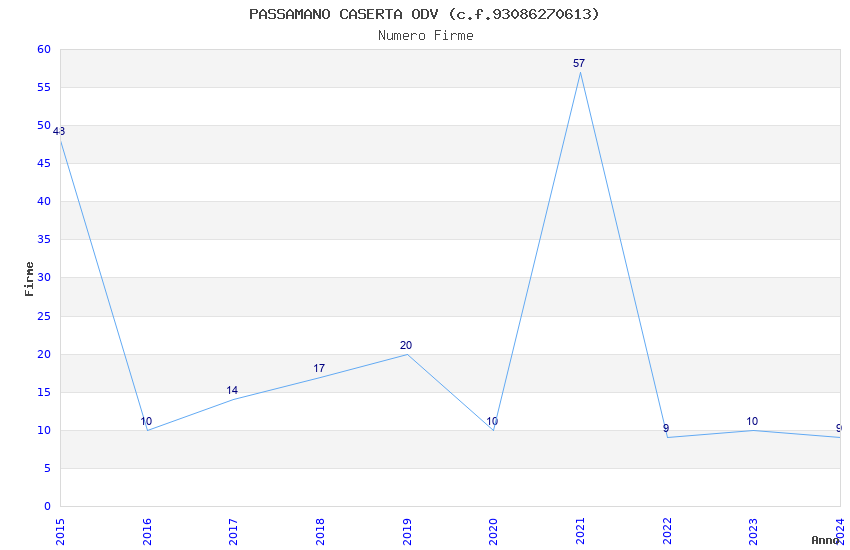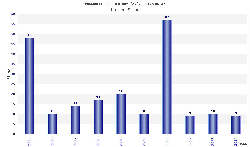 | Anno | Firme | Importi | Media | Naz. | Reg. | Prov. | Comu. |
