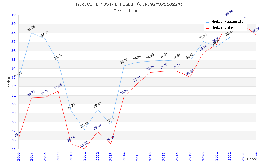 | Anno | Firme | Importi | Media | Naz. | Reg. | Prov. | Comu. |