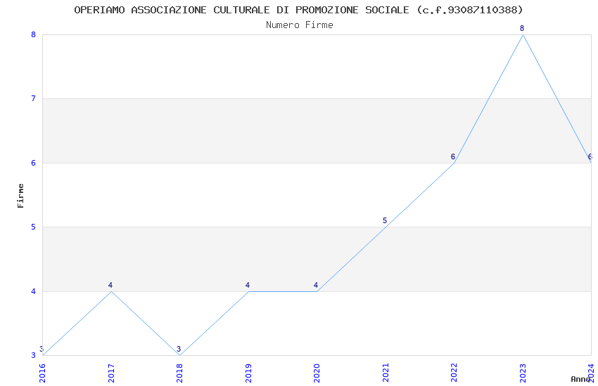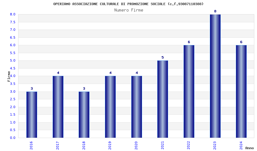 | Anno | Firme | Importi | Media | Naz. | Reg. | Prov. | Comu. |