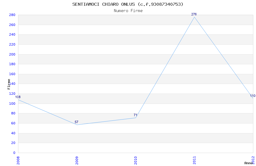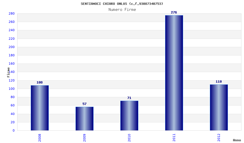 | Anno | Firme | Importi | Media | Naz. | Reg. | Prov. | Comu. |