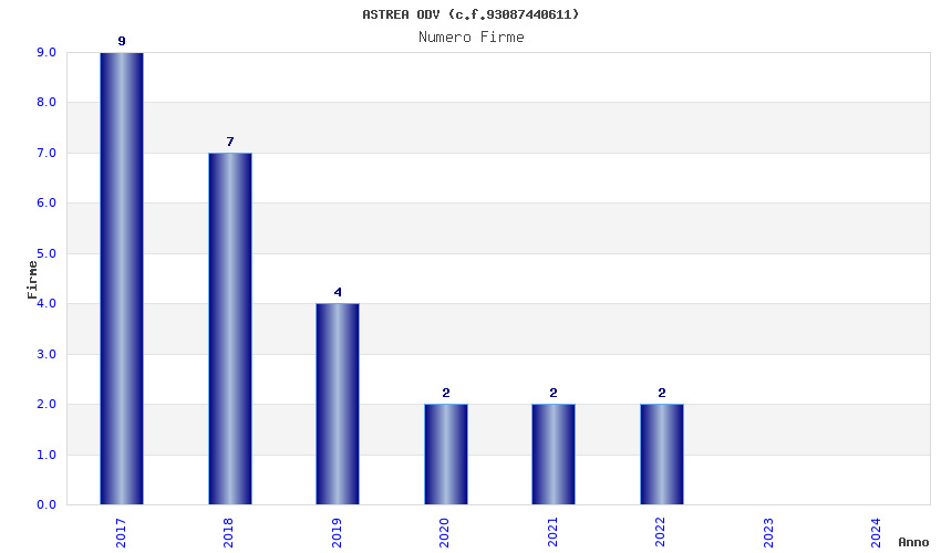 | Anno | Firme | Importi | Media | Naz. | Reg. | Prov. | Comu. |