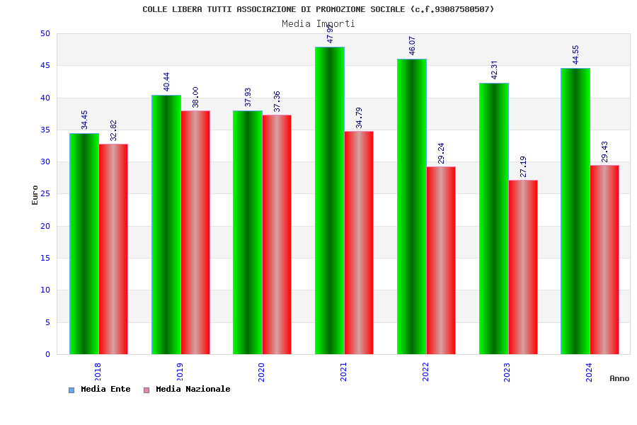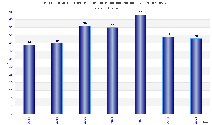 | Anno | Firme | Importi | Media | Naz. | Reg. | Prov. | Comu. |