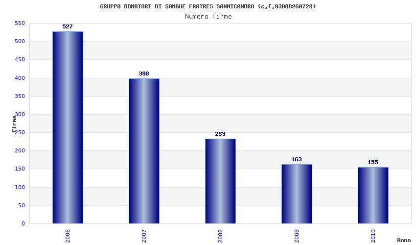 | Anno | Firme | Importi | Media | Naz. | Reg. | Prov. | Comu. |