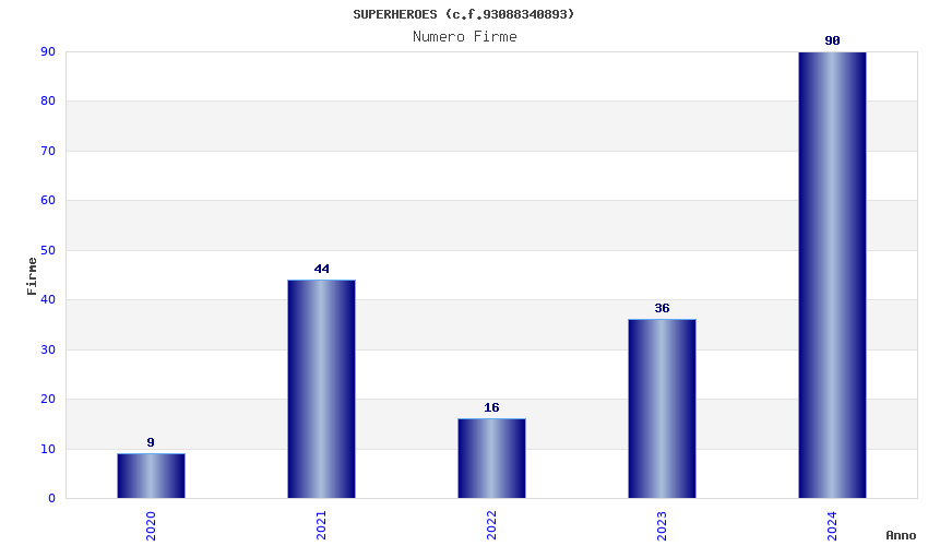 | Anno | Firme | Importi | Media | Naz. | Reg. | Prov. | Comu. |