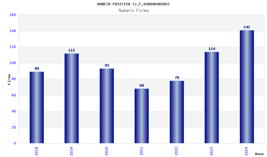 | Anno | Firme | Importi | Media | Naz. | Reg. | Prov. | Comu. |
