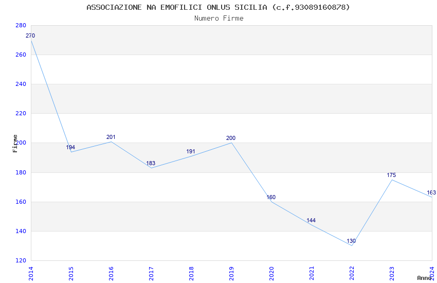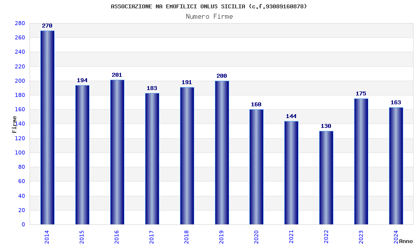 | Anno | Firme | Importi | Media | Naz. | Reg. | Prov. | Comu. |