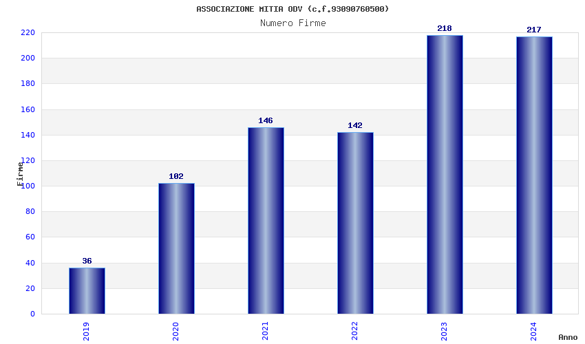 | Anno | Firme | Importi | Media | Naz. | Reg. | Prov. | Comu. |