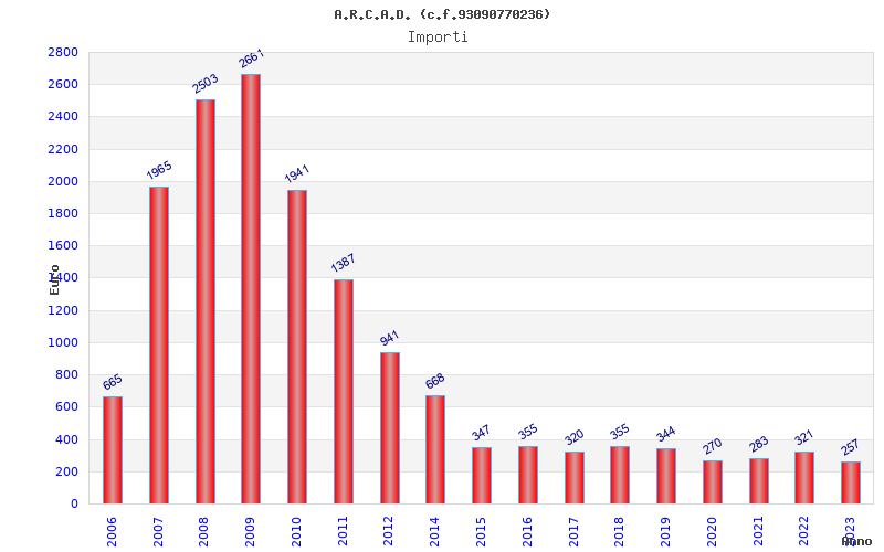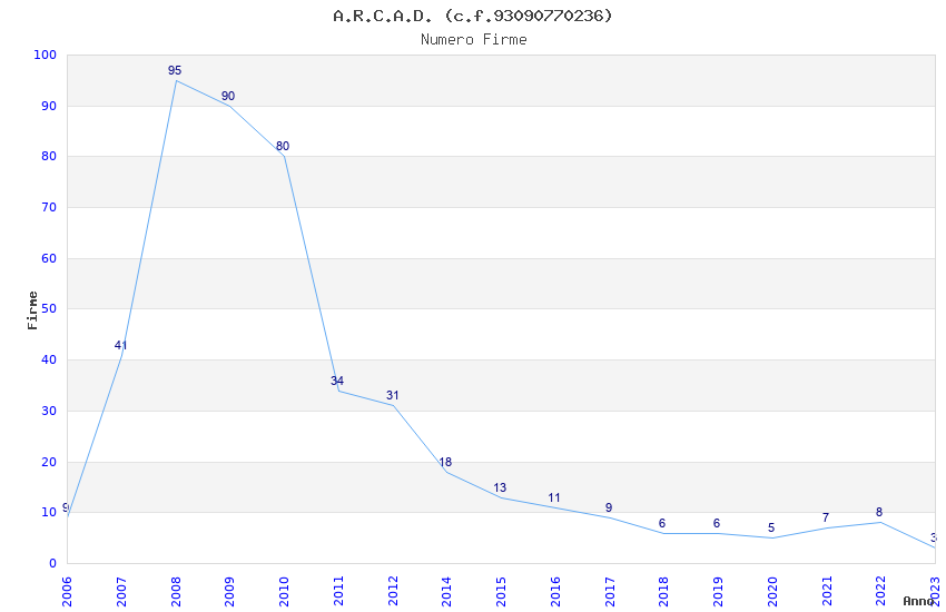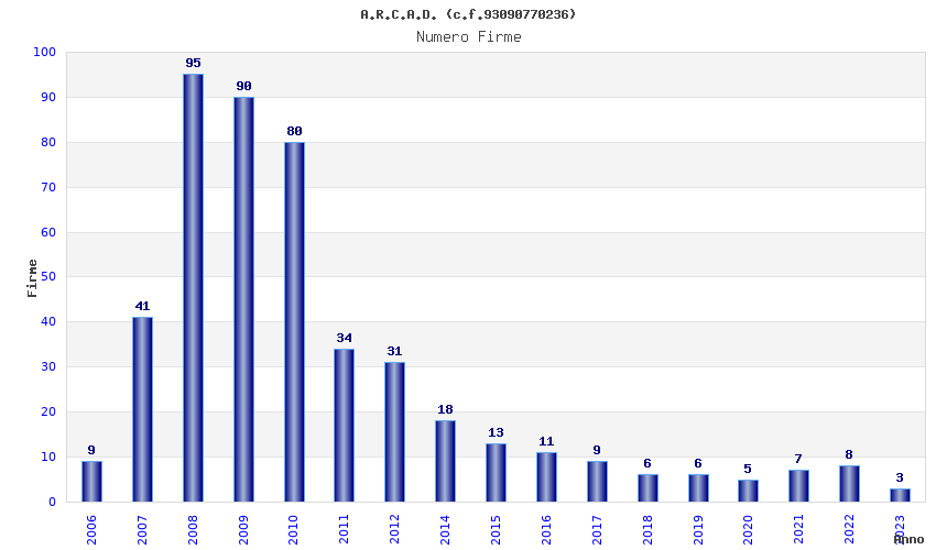 | Anno | Firme | Importi | Media | Naz. | Reg. | Prov. | Comu. |