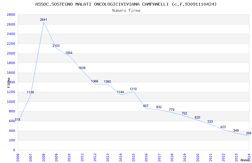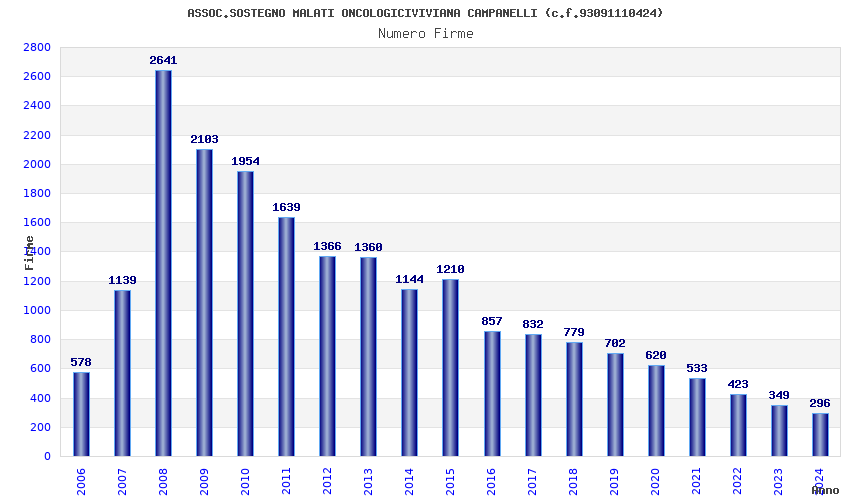 | Anno | Firme | Importi | Media | Naz. | Reg. | Prov. | Comu. |