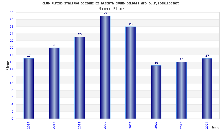 | Anno | Firme | Importi | Media | Naz. | Reg. | Prov. | Comu. |