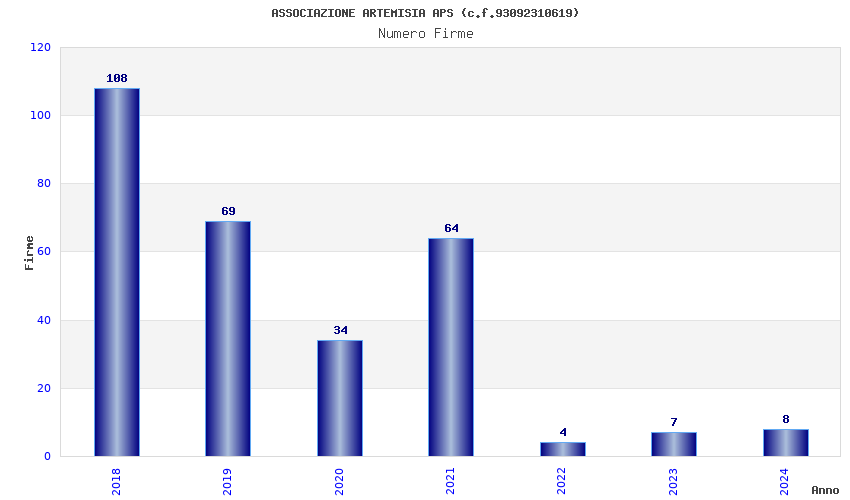 | Anno | Firme | Importi | Media | Naz. | Reg. | Prov. | Comu. |