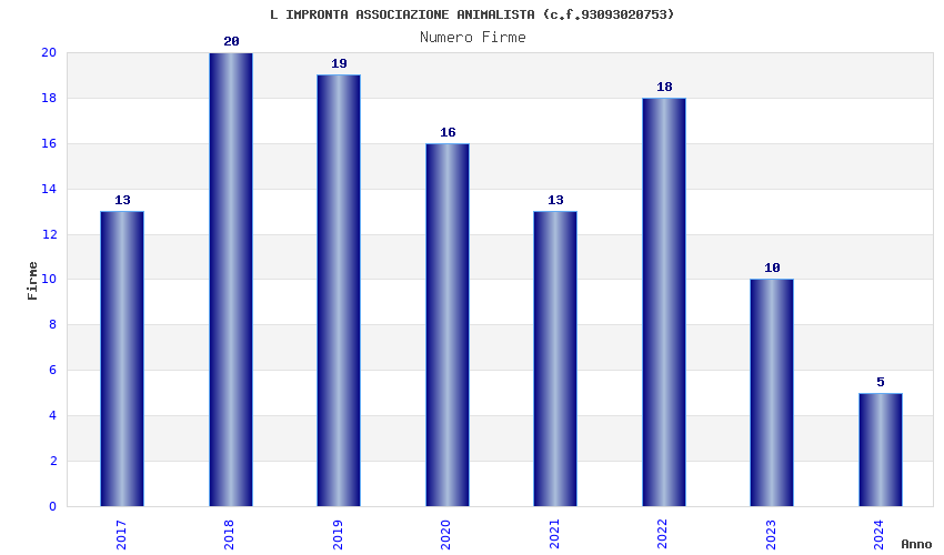 | Anno | Firme | Importi | Media | Naz. | Reg. | Prov. | Comu. |