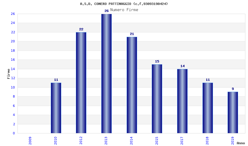 | Anno | Firme | Importi | Media | Naz. | Reg. | Prov. | Comu. |