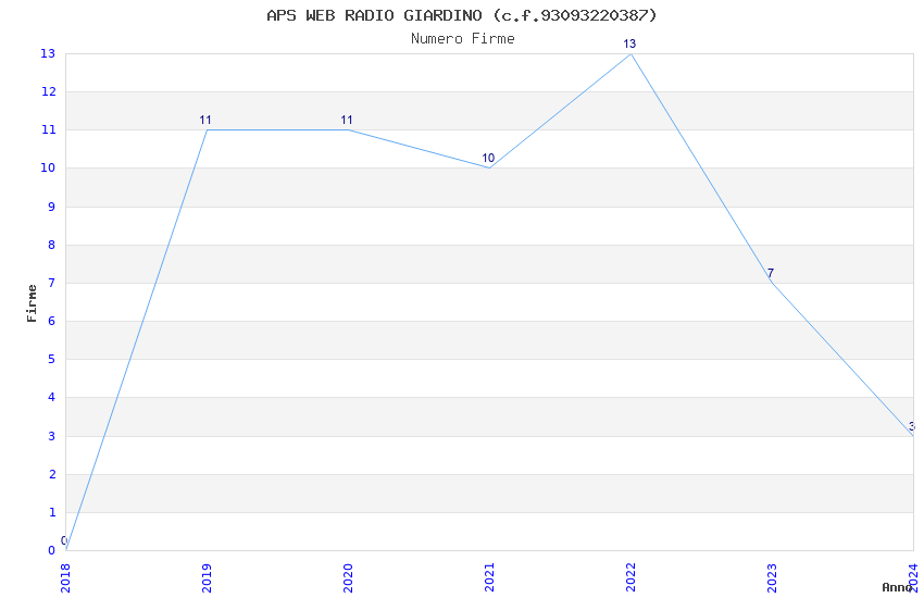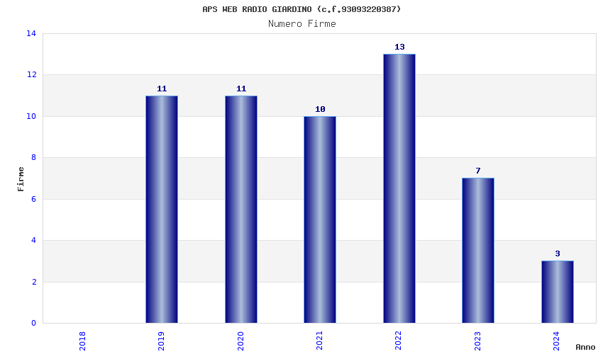 | Anno | Firme | Importi | Media | Naz. | Reg. | Prov. | Comu. |