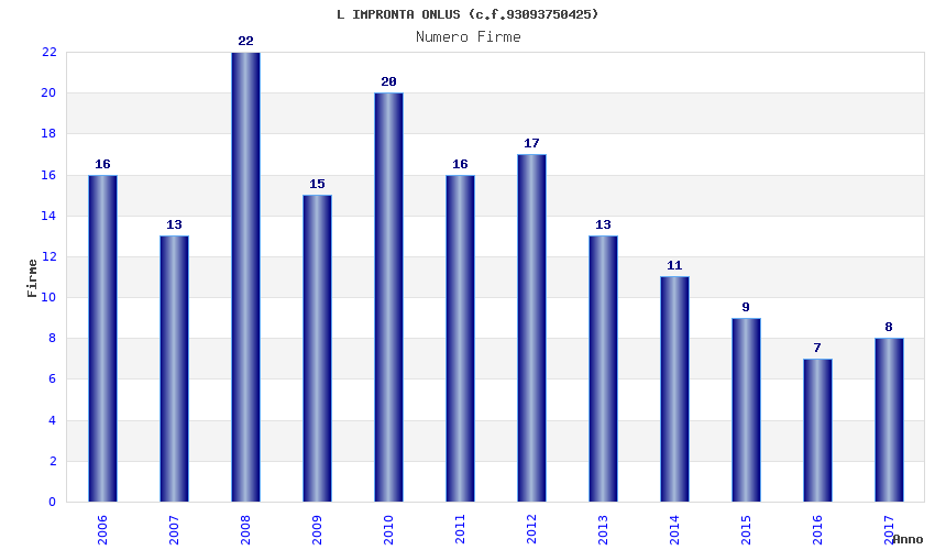 | Anno | Firme | Importi | Media | Naz. | Reg. | Prov. | Comu. |