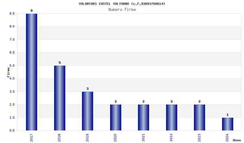 | Anno | Firme | Importi | Media | Naz. | Reg. | Prov. | Comu. |