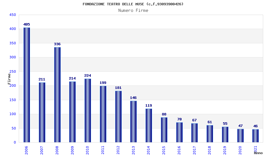 | 2021 | 46 | 2.440,78 | 53,06 | 20.700 | 498 | 204 | 65 |