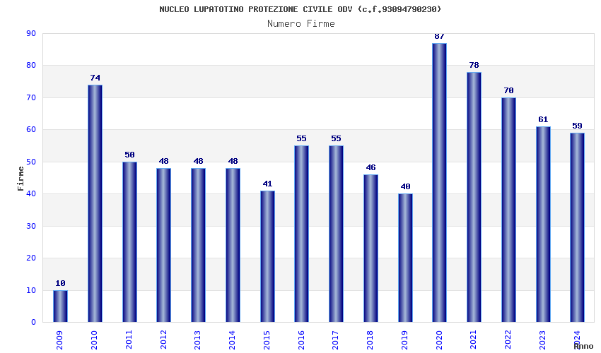 | 2010 | 74 | 1.957,84 | 26,46 | 16.770 | 1.619 | 325 | 7 |