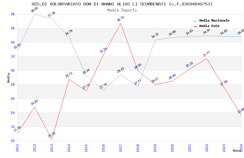 | Anno | Firme | Importi | Media | Naz. | Reg. | Prov. | Comu. |