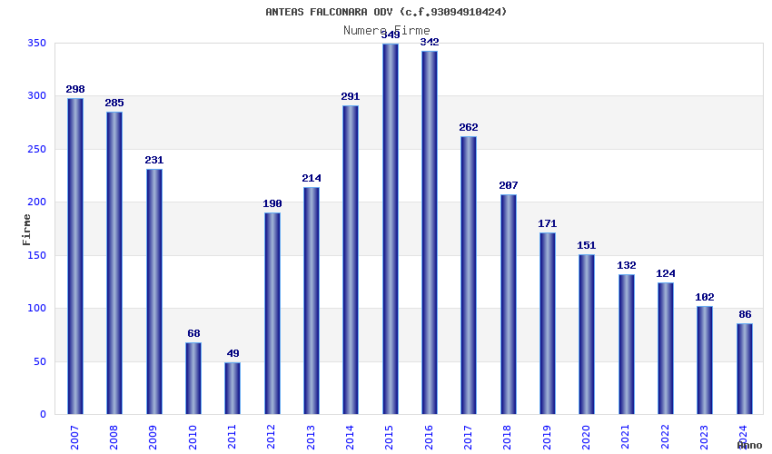 Anno Firme Importi Media Naz. Reg. Prov. Comu.