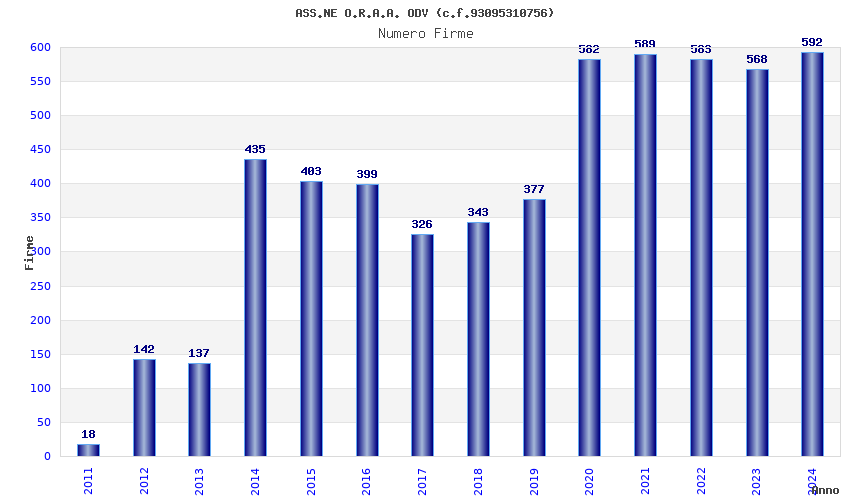 | Anno | Firme | Importi | Media | Naz. | Reg. | Prov. | Comu. |