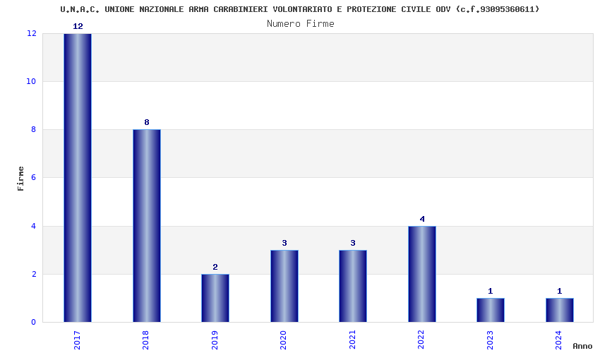| Anno | Firme | Importi | Media | Naz. | Reg. | Prov. | Comu. |