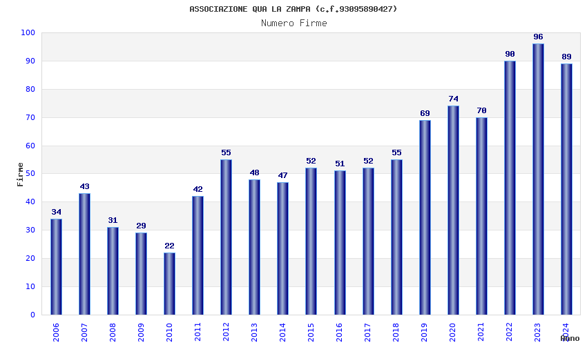 | Anno | Firme | Importi | Media | Naz. | Reg. | Prov. | Comu. |