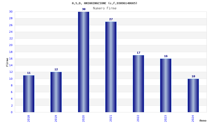 | Anno | Firme | Importi | Media | Naz. | Reg. | Prov. | Comu. |