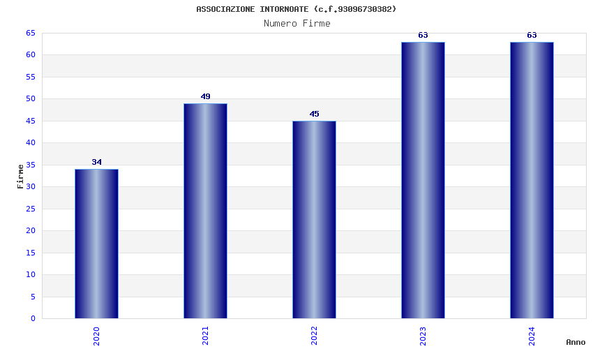 | Anno | Firme | Importi | Media | Naz. | Reg. | Prov. | Comu. |
