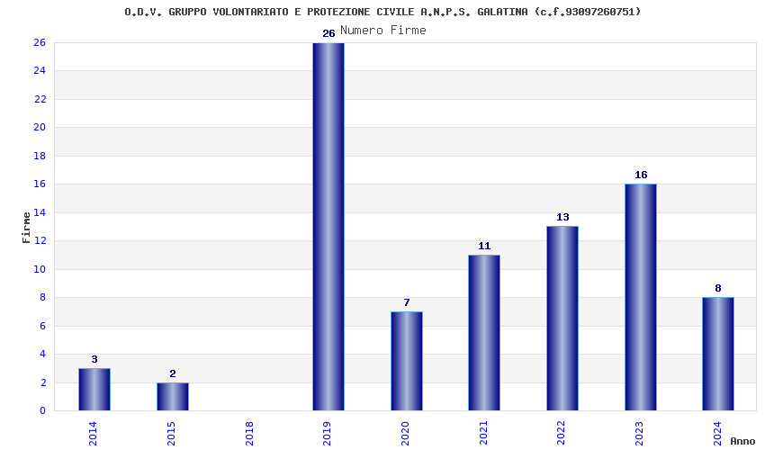| Anno | Firme | Importi | Media | Naz. | Reg. | Prov. | Comu. |
