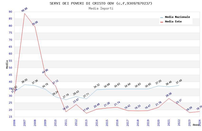 | Anno | Firme | Importi | Media | Naz. | Reg. | Prov. | Comu. |