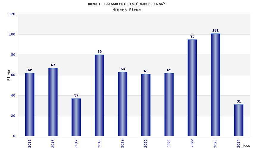 | Anno | Firme | Importi | Media | Naz. | Reg. | Prov. | Comu. |