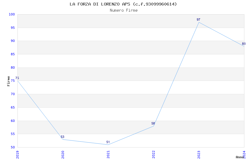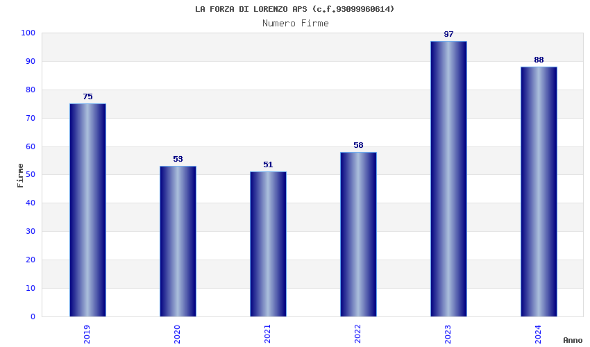 | Anno | Firme | Importi | Media | Naz. | Reg. | Prov. | Comu. |